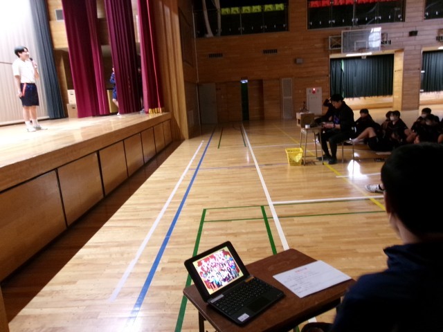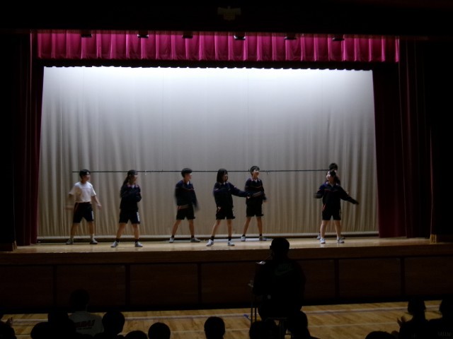 互いをリスペクト 公開日 2026/02/13 更新日 2026/02/13 できごと 7年生保健体育では、ダンスの単元を行っています。今日は、発表会でした。 6~7人グループになり、曲選び、振り付け、曲調とのイメージづくり、リズム、立ち位置、空間利用・・・などなど、いくつもの要素を複雑に組み合わせながらダンスを完成させました。特に、聞く態度がすばらしく、手拍子や歓声、また、制作意図を聞く場面では静寂が訪れ、発表者と聴衆が一体となったすばらしい発表会となりました。
