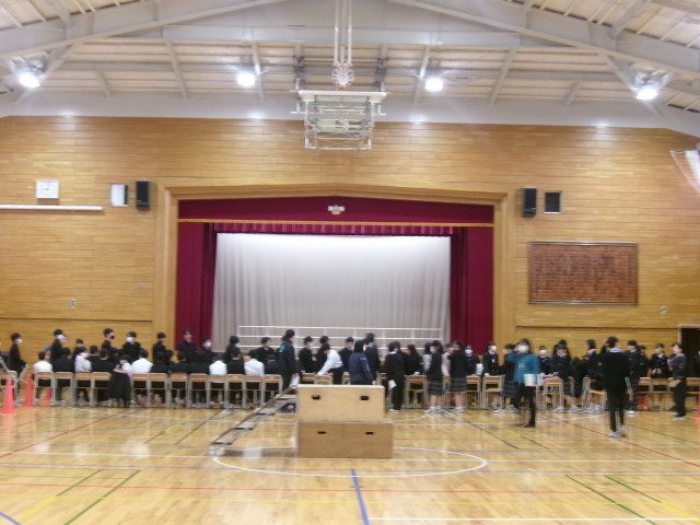はじめての 公開日 2026/02/16 更新日 2026/02/16 できごと 全校朝礼後、7年生がいすを持って再入場してきました。 初めての合唱コンクールに備えて、今日は、会場での動きの確認が中心でした。めての割にスムーズに動けていた印象を受けました。