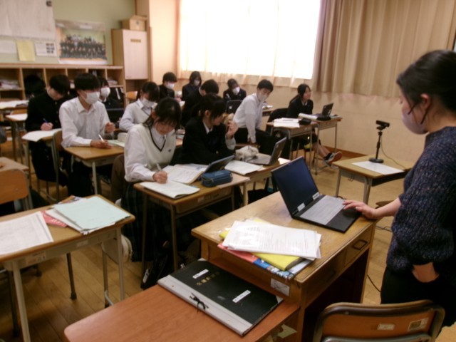 実用的な英語 公開日 2026/02/17 更新日 2026/02/17 できごと この日8年生英語では、「読む」、「書く」を中心とした文法事項の学習を行っていました。 基礎的基本的な構文を学習した後、「話す」、「聞く」、のペアワークを行うことで、実践的な英語力が身に付いている様子でした。