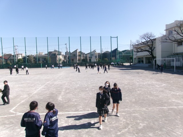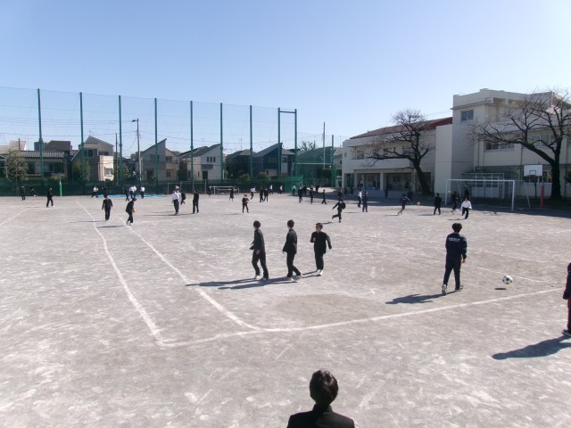 給食をしっかりと摂った後の校庭では、生徒の声が響いていました。体育委員が時間の管理を進めてくれるので、安心して時間いっぱいまで身体を動かしていました。