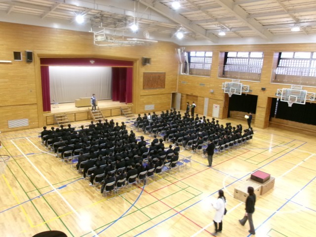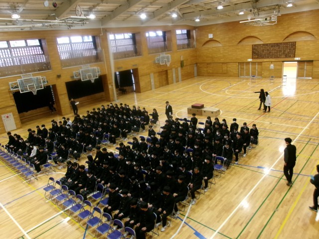 卒業式に向けて 公開日 2026/03/10 更新日 2026/03/10 できごと すべてのカリキュラムを終えた9年生。今週より、学年時間割を組んで、義務教育最後のまとめの時間を予定しています。 本日1時間目、卒業式の心構えとして、アリーナで全体授業を行いました。合唱コンクールの一体感の余韻を残したまま、生き生きとした表情で練習に取り組んでいました。全体の動きが速いので、端的な指示で課題を次々にクリアしていました。