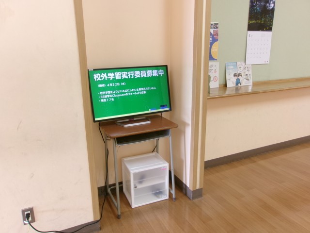 今年度より3年間、本校は、デジタルサイネージ実証モデル校として委嘱を受けています。初回の運用が、先日の土曜授業でした。