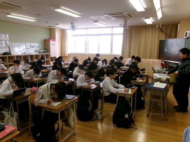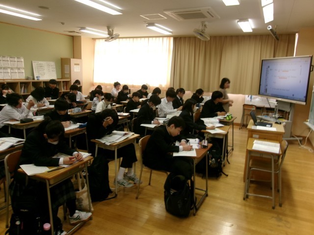 全員で学ぶメリット 公開日 2026/04/23 更新日 2026/04/23 できごと 東京都の多くの中学校では習熟度別少人数授業を行っていますが、本校では学級増にともない教室が足りなくなったことから、今年度から8・9年生での少人数授業は行っていません。 一方、クラス全員が同じ学習内容を履修できるメリットを生かし、効率的・効果的に授業を行っています。この日、8年生では、未来形の活用を学習していました。willとbe going toの微妙な違いについても、話題が及んでいました。