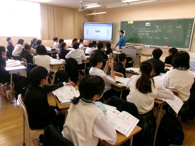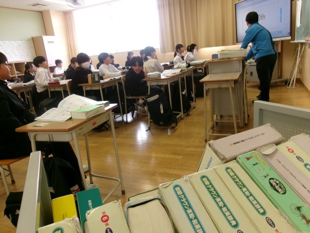 話す、聞く 公開日 2026/04/24 更新日 2026/04/24 できごと 中学校の英語は、主に4技能(話す・聞く・書く・読む)をバランス良く学習していきます。 この日7年生では、電子黒板を活用しながら基本的な英単語の発音を学習しました。文字を見て発音すると、どうしても「カタカナ発音」になりがちですが、先生が表情豊かにネイティブに近い発音で授業を行うと、生徒たちは「音声」として認識し、上手に発声していました。元気な声が響き、先生も生徒も自然と笑顔の多い授業となりました。