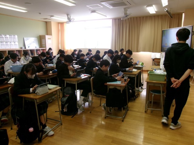 意欲が湧き出る授業 公開日 2026/04/27 更新日 2026/04/27 できごと 8年生理科は、複数の先生が領域別・単元別に授業を進めています。 今日は、これまでの復習を1問1答形式で学習しました。事前に先生が、選択式クイズアプリで100問用意していたため、意欲的に問題に取り組む生徒が多くいました。プリントで行うと「暗記」的な学習になりがちですが、この日は、既習知識が定着できているかを競う展開となりました。