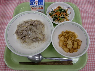 2日間の中間考査、お疲れ様でした。今日は、にんにくとレモン汁を効かせた「ねぎ塩豚丼」と食欲をそそる味つけの「じゃがいもと大豆のスパイシー揚げ」です。給食をお腹いっぱい食べて、元気をつけてください!