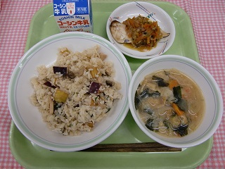 LUNCH TIME通信No.101 公開日 2021/10/22 更新日 2021/10/22 LUNCH TIME 通信 【秋の香りご飯 銀鰆の野菜あんかけ みそ汁 牛乳】 秋の香りご飯は、さつまいもとしめじを使っています。さつまいもは、ご飯に混ぜた時、形が崩れないように素揚げしています。調理員さんのひと手間が、見た目や味をさらに良くしてくれます!