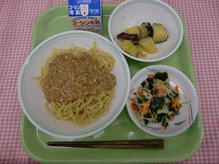 LUNCH TIME通信No.128 公開日 2021/12/07 更新日 2021/12/07 LUNCH TIME 通信 【ジャージャー麺 ねぎ塩サラダ さつまいものメープル煮 牛乳】 メープルシロップは、カナダやアメリカ北部でとれるサトウカエデの樹液を煮つめたもので、はちみつとは異なります。 今日は、さつまいもと一緒に、メープルシロップの風味を感じてみてください。