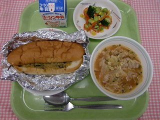 【小松菜ミートサンド ブロッコリーサラダ ABCミネストローネ 牛乳】