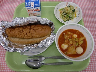 LUNCH TIME通信No.147 公開日 2022/01/20 更新日 2022/01/20 LUNCH TIME 通信 【メープル入り黒砂糖パン 人参ドレッシングサラダ うずら卵のトマト煮 牛乳】 今日は、久しぶりに甘いパンの登場です。パンの間には、メープルバターがサンドされています。ほんのり香ばしい黒砂糖の香りを感じながら、食べてください。