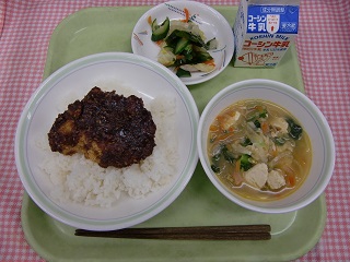 LUNCH TIME通信No.150 公開日 2022/01/25 更新日 2022/01/25 LUNCH TIME 通信 【味噌カツ丼 ゆず風味和え 沢煮椀 牛乳】 今日は、明日から始まる、9年生の都立高校推薦入試の応援献立、味噌カツ丼です!「受験にカツ!」の思いを込めて、給食室からも応援しています。 また、沢煮椀には板橋区産の長ねぎを使っています。地元野菜を味わってください。