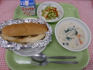 LUNCH TIME通信No.153 公開日 2022/01/28 更新日 2022/01/28 LUNCH TIME 通信 【キンピラサンド カレードレッシングサラダ 白菜のクリーム煮 牛乳】 白菜は、畑で冬を越す時、外側の葉で包み込むようにしてひもなどでしばられています。すると、葉が寒さで傷まずに、冬を越せます。寒さに耐えた白菜は、甘みが増します。