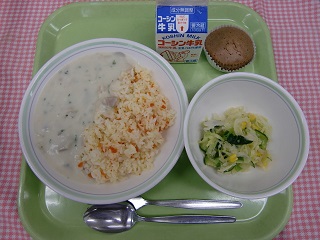 LUNCH TIME通信No.163 公開日 2022/02/14 更新日 2022/02/14 LUNCH TIME 通信 【キャロットピラフクリームソース オニオンドレッシングサラダ ココアケーキ 牛乳】 クイズです!カカオの実は、どこにできるでしょうか? 1 土の中、2 木の枝、3 木の幹 正解は、2 木の枝と3 木の幹です。今日は、バレンタインデーにちなんだデザートです!