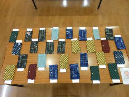 7年生は家庭科でまとめるケース作り、美術でレタリングに取り組みました。