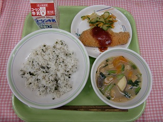 LUNCH TIME通信No.182 公開日 2022/03/16 更新日 2022/03/16 LUNCH TIME 通信 【わかめご飯 鮭フライ おろし和え みそ汁 牛乳】 今日の鮭フライには、トマトケチャップやしょうゆなどを使ったソースがかかっています。フライの時のいつものソースとは違う、ソースの味をぜひ味わってください!