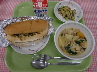 LUNCH TIME通信No.183 公開日 2022/03/17 更新日 2022/03/17 LUNCH TIME 通信 【プルコギサンド ビーンズサラダ ABCスープ 牛乳】 皆さんは、「板ずり」という調理用語を知っていますか?これは、きゅうりなどをまな板にのせて塩をふり、手のひらで転がしながら表面のいぼを取り除きます。緑色をより鮮やかにしたい時にする下ごしらえです。