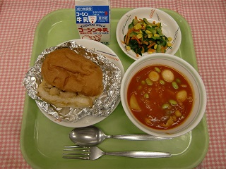 LUNCH TIME通信No.15 公開日 2022/04/28 更新日 2022/04/28 LUNCH TIME 通信 【照り焼きチキンサンド オニオンドレッシングサラダ うずら卵のトマト煮 牛乳】 給食のサラダは、加熱した野菜を使用しています。あつあつのゆで野菜を冷ますために、志村一中の給食室では、「真空冷却機」という機械を使います。これは、ゆでた時に野菜についた水分を取ると同時に、冷却してくれます。