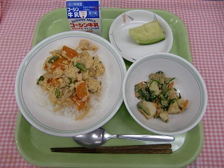 LUNCH TIME通信No.26 公開日 2022/05/19 更新日 2022/05/19 LUNCH TIME 通信 【親子丼 香味ドレッシングサラダ 果物(メロン) 牛乳】 クイズです!英語で「watermelon(ウォーターメロン)」という、食べ物は次のうちどれでしょうか? 1 すいか、2 きゅうり、3 キウイフルーツ 正解は、1 すいかです。