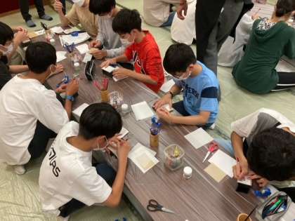 思い思いの柄を描き、京都の伝統工芸を体験しました。