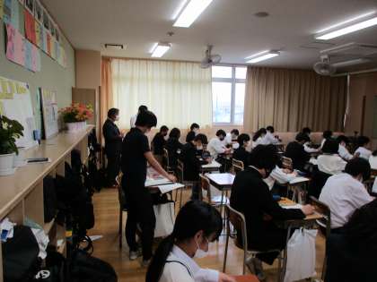 8年生 数学の授業 公開日 2022/05/27 更新日 2022/05/27 お知らせ 8年生数学の授業です。 今日は数学の先生の「研究授業」です。何人かの先生が授業を参観していたせいか、先生も子どもたちも、少し緊張していたように思います。