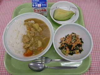 LUNCH TIME通信No.33 公開日 2022/05/30 更新日 2022/05/30 LUNCH TIME 通信 【チキンカレー わかめサラダ 果物(メロン) 牛乳】 「追熟」という言葉を知っていますか?「追熟」とは、果物が収穫後も成熟を続けることをいいます。特に、メロン、バナナ、洋梨などに、追熟現象がみられます。このような果物は、木で完熟せずに未熟なうちに収穫して追熟させた方が、香りや風味がよくなります!