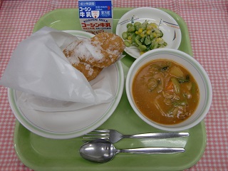 LUNCH TIME通信No.37 公開日 2022/06/03 更新日 2022/06/03 LUNCH TIME 通信 【シュガー揚げパン コールスローサラダ ハンガリアンシチュー 牛乳】 6月4日〜6月10日は、「歯と口の健康週間」です。来週は、かみごたえのある食材を使ったメニューが給食で登場します。いつもより、かむことを意識して食べましょう!