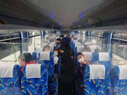 談合坂を予定より少し早く出発しました。少し太陽が出てきました。みんな元気です。