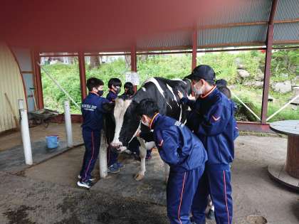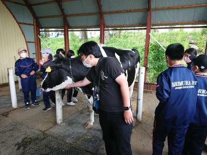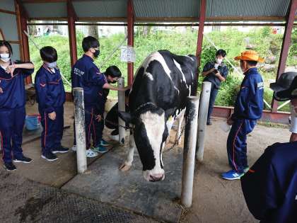 移動教室第2班 牧場体験 公開日 2022/06/09 更新日 2022/06/09 お知らせ 乳しぼりをしています。子どもたちは、開始前少し怖がっていましたが、始めると楽しそうです。乳しぼりを始めるとき、牛に挨拶をしていました。牛の名前はアイリスちゃんだそうです。