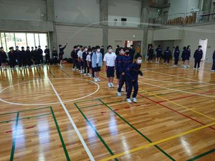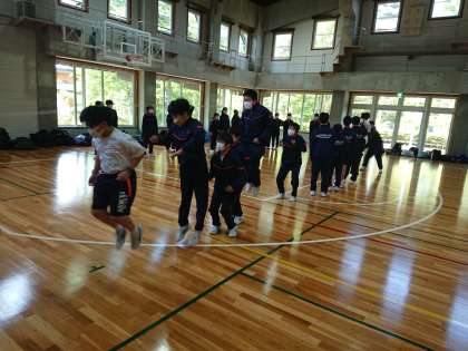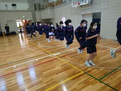 国語?の学習が終わりました。休憩をはさみ、今度はクラス対抗の大縄大会です。まず30分の練習です。