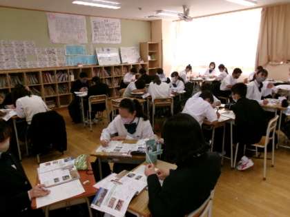 今日は、四大文明の学習を踏まえ、教科書資料を頼りに、古代ギリシャ・ローマの文化と比較・関連付けながら整理していました。時代の移り変わりと共に、政治の仕組みの変化や道具の進化、人々の交流などに考えが及びました。