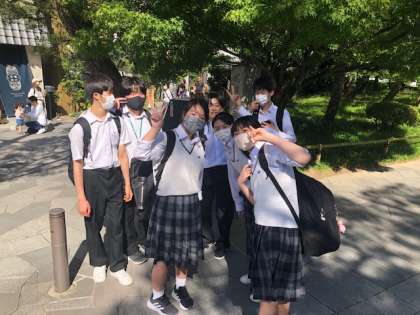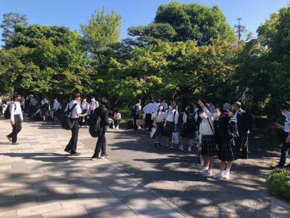 揃ったクラスから平等院に入場して、記念写真を撮ります。