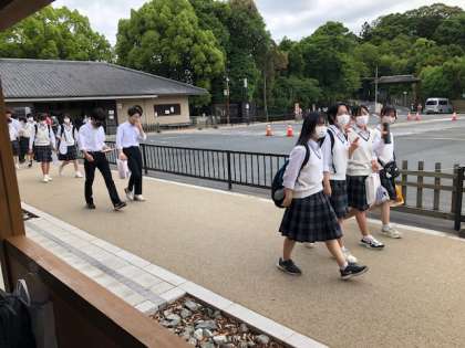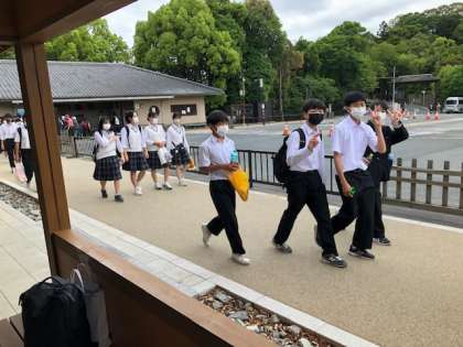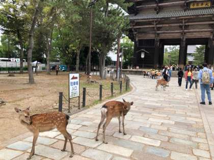 奈良公園の散策を終え、これからバスにむかいます。