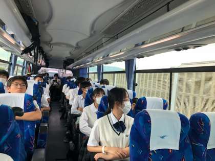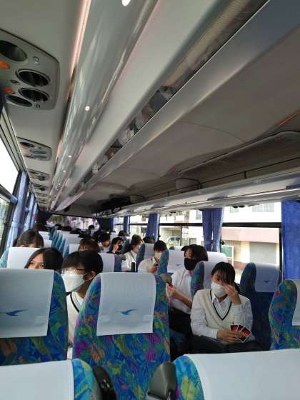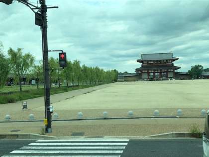 時間前に集合が完了し、昼食のため、バスで大阪方面に向かっています。バス内から平城宮の朱雀門が見えました。