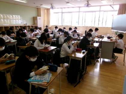 7年生では、中学校生活もしっかり定着し、4階校舎を上がる時間を考えて、自主的に早めに登校している様子でした。