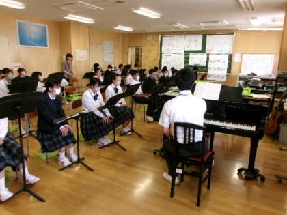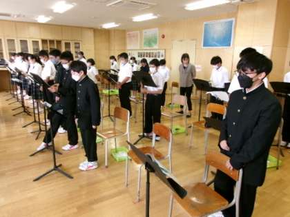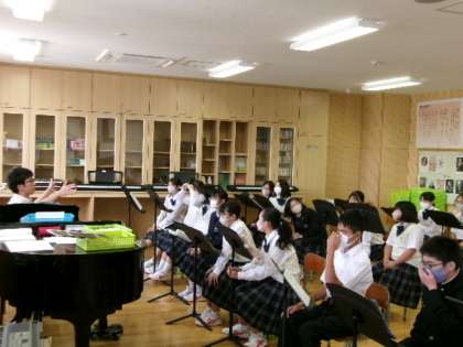 7年生音楽 公開日 2023/05/29 更新日 2023/05/29 できごと 7年生音楽では、教育実習生による授業が行われていました。今は合唱の単元で、「夢の世界を」の三部合唱に取り組んでいます。 特に男子は声変わりの成長過程であるため、音程を重視した練習方法がとても素晴らしく思えました。私も中学生だった頃、このような指導を受けたかった、という展開でした。