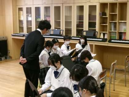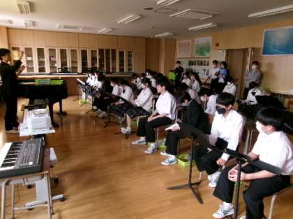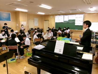 民族音楽『ケチャ』のリズムを通して、音楽の本質に迫る展開でした。特に、4つのリズムパターンをグループごとに言葉に置き換えて練習した後、全体で奏でたリズムからは、アンサンブルの魅力を体験できたようでした。