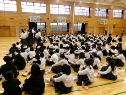 今日は実行委員司会のもと、前日の確認が行われました。中学校に入って初めての宿泊行事です。今日の様子からは、全体での行動を優先して秩序ある生活を期待できる雰囲気を感じることができました。