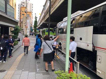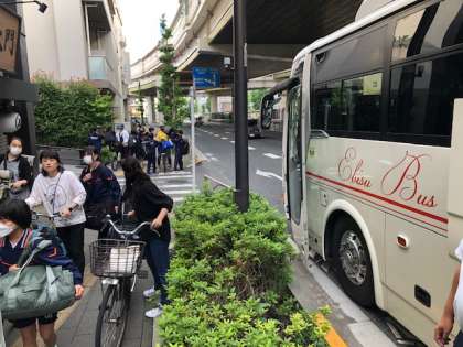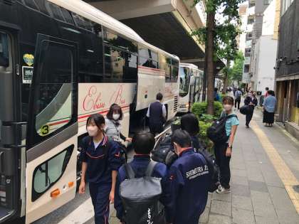 おはようございます。今日から、7年生移動教室です。予定時刻にバスに乗り込んでいます。