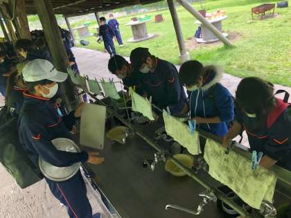 班長、かまど&薪係、炊飯係、調理係、用具係、それぞれの役割を調和させて、カレーができあがります。