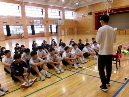 9年生保健体育 公開日 2023/06/08 更新日 2023/06/08 できごと 本日、アリーナで9年生保健体育が行われていました。 技能習得を確認するため、今日は男女混合チームで実践形式の試合を行いました。バスケットボール経験者が中心となり、多くのチームメートにパスを回していた姿が印象的でした。また、審判団の動きも大切であることを学んだ様子でした。
