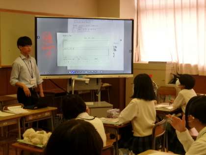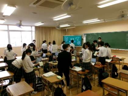 8年生英語 公開日 2023/06/09 更新日 2023/06/09 できごと 8年生英語では、少人数での授業を展開しています。 今日は、ALTの先生との対話を控えて、接続詞(when,if,that,because)を交えながら質問を考えていました。他者の立場を踏まえながらの『答えのない問い』は、生徒の思考力を鍛えます。