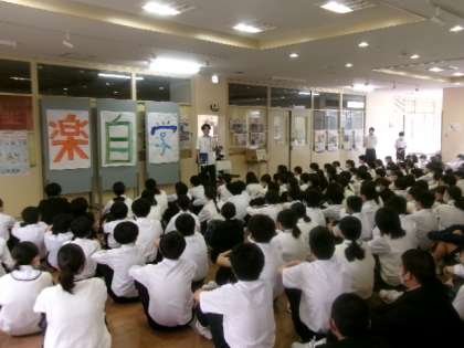 本日朝、多目的スペースで7年生学年集会が行われました。先生方が朝の打ち合わせが終わり4階に上がると、すでに整列が完了していて、すぐに集会が始まりました。
