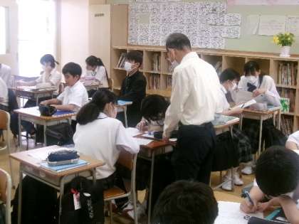 7年生数学 公開日 2023/06/15 更新日 2023/06/15 できごと 初めての定期テストを再来週に控え、1学期の学習のまとめの段階に入ってきました。 今日の7年生数学では、正負の数を中心として、基本的な計算問題、発展的な文章問題に取り組んでいました。