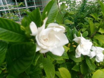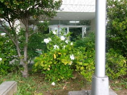 用務主事さんが大切に育ててくれている草木の1つ、「くちなし」の花が見頃を迎えています。