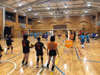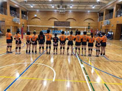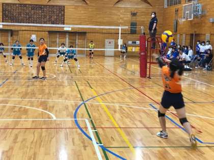 女子バレー部夏季ブロック大会の決勝を戦っています。がんばれ、バレー部!!