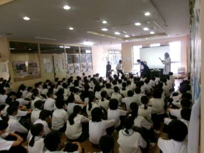 7年生平和学習 公開日 2023/07/03 更新日 2023/07/03 できごと 7年生では、3年間を通じて『平和』について様々なアプローチで単元構成を図っています。定期考査後のこの時期に行われるガイダンスが、本日1時間目に行われました。 生徒に興味・関心をもって主体的に関わってもらえるよう、担当の先生が工夫しながらガイダンスが行われました。どのような内容が続いていくのか、今後の展開が楽しみです。