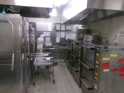 調理室は冷房施設があるものの、衛生管理上、マスク、手袋、帽子等を着用して、準備してくれています。暑い中でも毎日準備していただき、ありがとうございます。