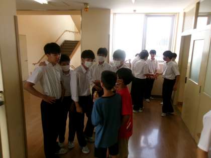 小中一貫教育校(6年生来校) 公開日 2023/07/11 更新日 2023/07/11 できごと 学びのエリアは、志一小、志三小、富士見台小と本校の4校で編制しています。今日は、小学6年生が中学生になる自覚を養うことを目的として、富士見台小学校の6年生に来校いただきました。中学生側にとっても、年少者への気遣いといった情操教育となる貴重な機会になった様子でした。 今後、13日は志三小、14日は志一小に来校いただく予定です。