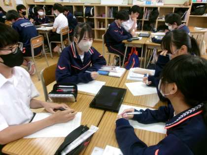 9年生国語では、グループディスカッションの学習が深まってきました。