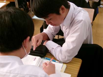 学習内容の確認 公開日 2023/11/14 更新日 2023/11/14 できごと 9年生国語では、明日から始まる期末考査に備えて、これまでの学習内容を確認しました。 特に、古典では、返り点通りに論語を読むことを通して、自身の将来の展望を描く場面がありました。